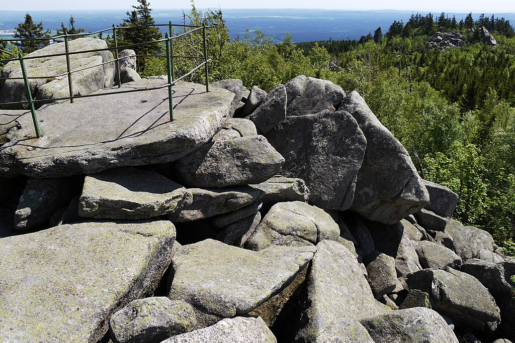 Die Leistenklippe ist eine spektakuläre Felsformation auf 900 m Höhe im Nationalpark Harz. 🏔️ Sie bietet eine der schönsten Aussichten auf den Brocken und das Umland. Die Stempelstelle HWN 15 befindet sich direkt an der Klippe.